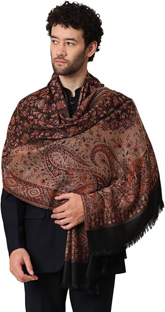 Zamour Large Jacquard Woven Indian Shawl Wrap for Men, Light Weight, Traditional Floral Jaal Patterns Black